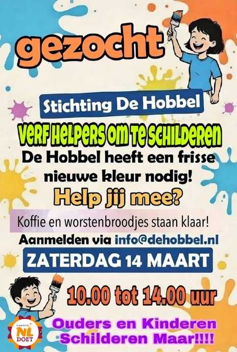 Op die dag gaan wij klussen, opruimen en schilderen in De Hobbel.